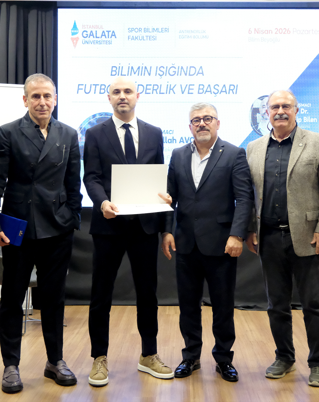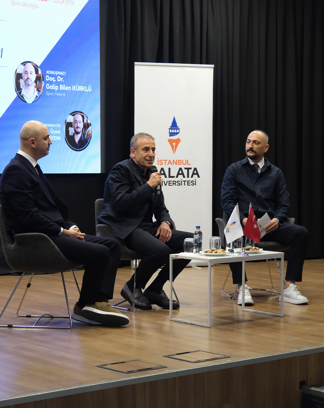 Spor Bilimleri Fakültesi Antrenörlük Eğitimi Bölümümüz tarafından düzenlenen "Bilimin Işığında Futbol, Liderlik ve Başarı" başlıklı etkinlik; Antrenörlük Eğitimi Bölüm Başkanı Dr. Öğr. Üyesi Yiğit Yurtaydın'ın moderatörlüğünde, Teknik Direktör Abdullah Avcı ve Antrenörlük Bölümü Öğretim Üyesi Doç. Dr. Galip Bilen Kürklü'nün katılımlarıyla gerçekleşti.