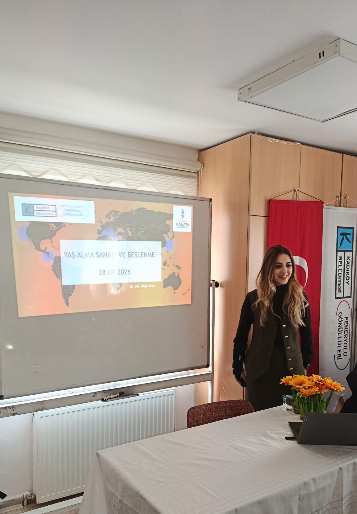 Beslenme ve Diyetetik Bölümü Dr. Öğr. Üyesi Rüya Yaşar tarafından, Kadıköy Belediyesi Feneryolu Gönüllü Evi’nde toplum sağlığını bilgilendirme amacıyla “Yaş Alma Sanatı ve Beslenme” başlıklı, yaşlılıkta beslenmeye yönelik sunum gerçekleştirilmiştir.