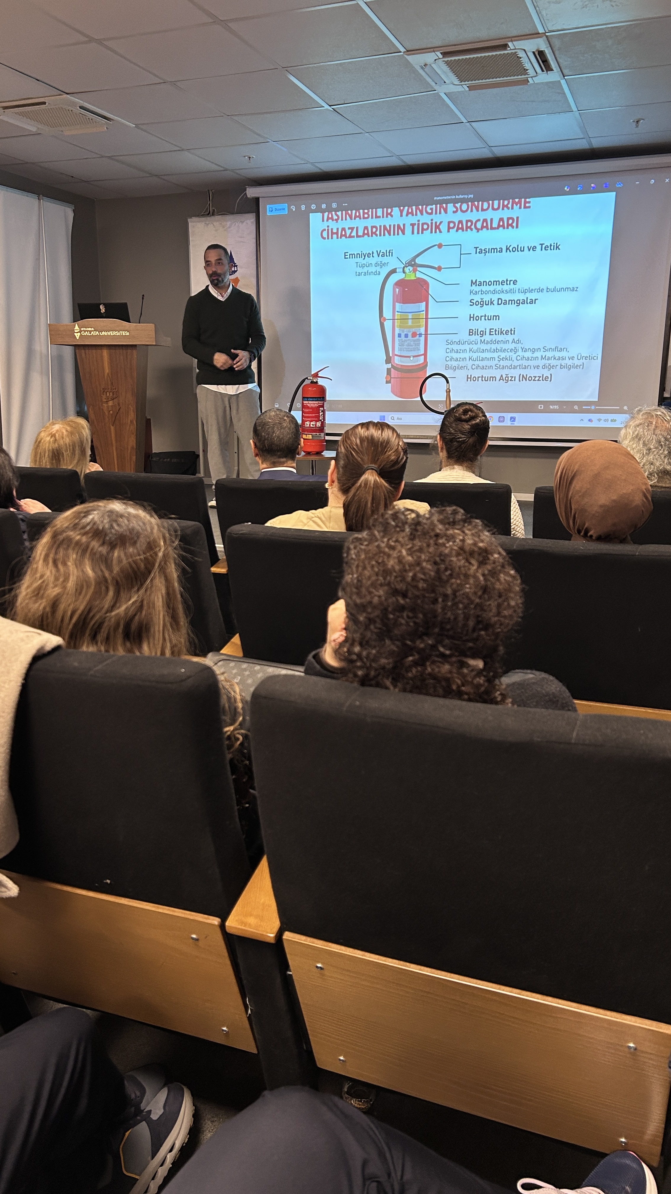 Üniversitemizin hizmet içi eğitim politikası kapsamında, idari ve akademik personelimiz teorik ve pratik olarak ‘Yangın Eğitimi’ aldı.